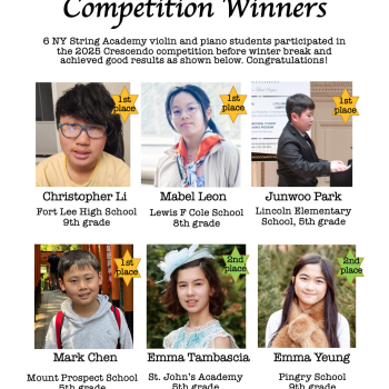 6 NY String Academy violin and piano students participated in the 2025 Crescendo…