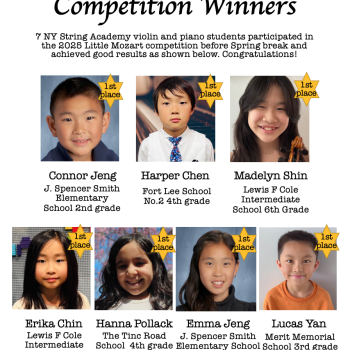 6 NY String Academy violin and piano students participated in the 2025 Crescendo…